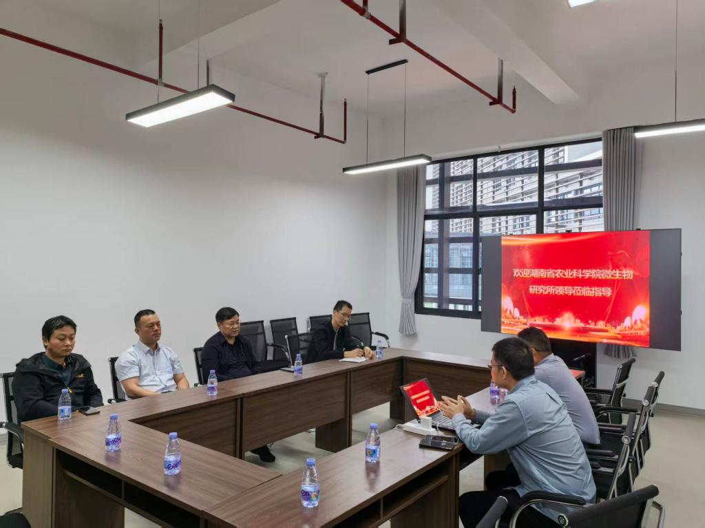 湖南省微生物研究所专家一行对我院的快速发展表示赞赏,并分享了该所在微生物资源开发与应用研究方面的优势与经验。党总支书记郭照辉表示,双方研究领域高度契合,合作前景广阔。未来,双方将积极探索共享资源、联合攻关的新路径,力争在产学研融合上取得新突破。